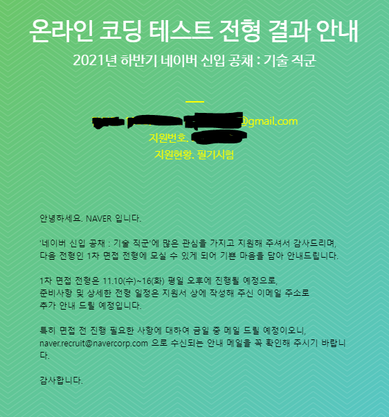 | 2021 하반기 NHN 그룹사 신입 개발자 공채 Pre-test(1차) 후기 (0) | 2021.10.23 |